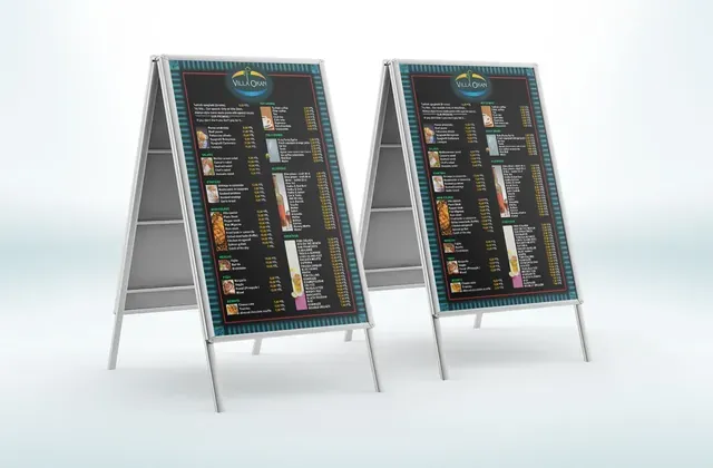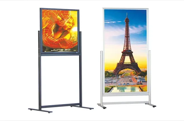 Duvar tipi veya ayaklı olarak farklı boyutlarda poster ve görsellerin sergilenmesini sağlar. - Ürün Teşhir Standları