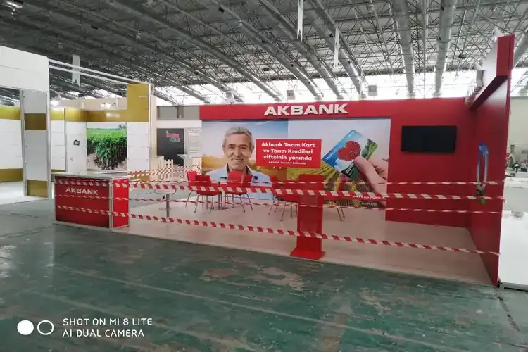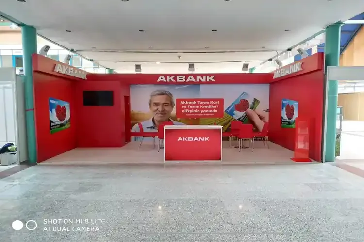 - Açık ve Kapalı Alan Standları: Açık fuar alanlarında tenteli, kapalı salonlarda panel ve ışıltılı tabela uygulamalarıyla dikkat çeker.